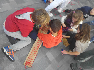 Los huesos fueron creados con pajitas de colores, cortas y largas, a las que luego envolvieron con cinta de carrocero. Pero para encajar los huesos y músculos en la piel que primero estaba creando, los de segundo tuvieron que medir los trozos de cartón y las pajitas a utilizar con los huesos.